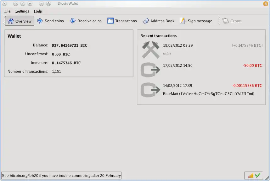 1010 | Feb 18, 2012 | Feb 21 02:47:15 | All | 100 | See bitcoin.org/feb20 if you have trouble connecting after 20 February |