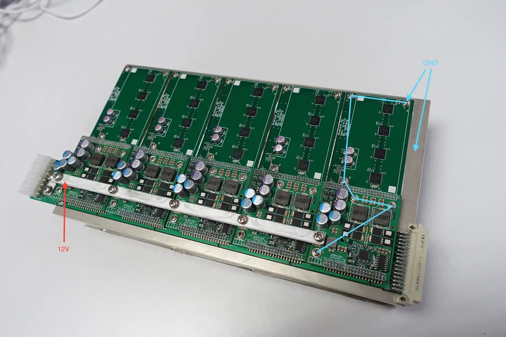 The other way is open the case to check PMU (Power Module Unit) * (On the left) Three 270uf 16V and two 820uf 16V blue solid capacitors are used in 4.0 version. * (On the right) Four 100uf 16V and four 560uf 6.3V purple solid capacitors are used in 4.1 version.File:Avalon4.0-PMU.png File:Avalon4.1-PMU.png