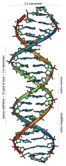 DNA (Deoxyribonucleic acid) is a large molecule essential for life. DNA encodes genetic instructions for the development and functioning of living organisms and viruses. Most DNA molecules are 2 polymer chains, made from four different monomers called nucleotides (A, T, C, G), in the form of a double helix. Other naturally occurring polymers include proteins, starch and cellulose.