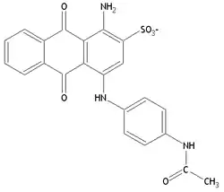 Many acid dyes are synthesised from chemical intermediates which form anthraquinone-like structures as their final state. Many blue dyes have this structure as their basic shape. The structure predominates in the levelling class of acid dye.