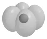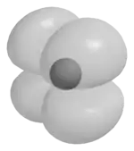 Sometimes, particularly when discussing d orbital splitting in complexes, d orbitals are arranged into two groups based on their symmetry. The dz² and dx²−y² orbitals form a group called eg, while the dxy, dxz and dyz orbitals form a group called t2g.