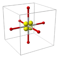 The images below illustrate the orbitals dz² (left) and dx²−y² (right) and their positioning within an octahedral complex. The central transition metal atom or ion is grey, the six ligands are red and the orbitals are yellow.