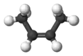 Alkenes such as ethene (shown to the right) have a carbon-carbon double bond. In such a double bond, there is significant electron density above and below the plane of the bond. Rotation around the bond is greatly restricted by a large energy barrier. For rotation to occur, groups attached to one of the double-bonded carbons would have to temporarily occupy this high electron density region, resulting in very high repulsion between the electrons in the group and the electrons in the double bond.