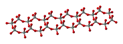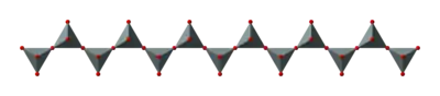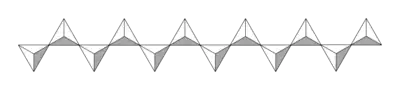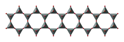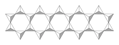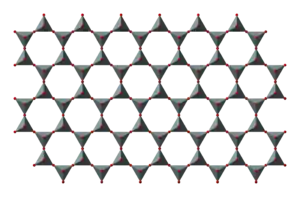 SiO4 tetrahedra can be arranged to form sheets, as illustrated to the right. The formula of such a sheet can be written (Si2O52−)n.