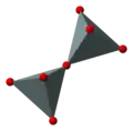 If two [SiO4]4− tetrahedra share an oxygen atom at one common vertex, an [Si2O7]6− ion is formed. The silicon to oxygen ratio is 2:7.