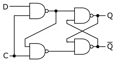 The D-type flip flop has two inputs, the control () and the clock signal, along with two outputs, the stored data () and the inverse ().
