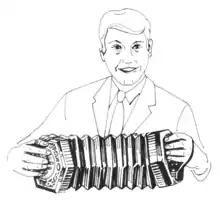 Single voice. Taking advantage of the three octaves to play a single note, at a time, over a wide range. Play involves memorizing the sequence of bellows action as well as the location of buttons corresponding to the notes. This may sound easy, but in fact can be the hardest to learn, as melodic tunes are often played very rapidly. This type of play is often heard in association with other melodic instruments played presto (160bpm), such as tin whistle or fiddle. Using this technique allows the three F# notes to be use as accidentals.