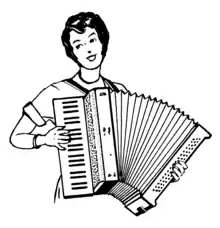 If playing seated, adjust the straps so that the instrument rests lightly on your left leg but doesn't hang loosely from your body. The bottom of the keyboard should be between the legs, and not moved too far to one side. You might need to move your right leg out of the way a little bit so the right hand can reach the bottom keys on the accordion unimpeded. Sit up straight in your chair - don't lean backwards against the back of the chair or slump; it looks bad and can result in poorer accuracy.