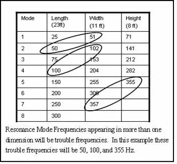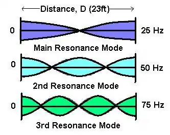Standing waves can distort noises 300 Hz and down. These noises include the lower mid frequency and bass ranges. Standing waves tend to collect near the walls and in corners of a room, these collecting standing waves are called room resonance modes.