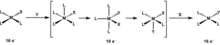 In a regular square planar the mechanism follows X becoming part of the complex momentarily and Y as the leaving group.