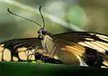 Butterflies and moths are a group of insects called Lepidoptera. Like all insects, butterflies and moths have a head, thorax, abdomen, two antennae, and six legs. Additionally, moths and butterflies have four wings that are almost always covered by colored scales, and a coiled proboscis for drinking liquids such as flower nectar. Lepidoptera is derived from the Latin "lepido"= scale + "ptera" = wing. Of course there are exceptions; some moths have wingless adults and some primitive moths lack a proboscis.