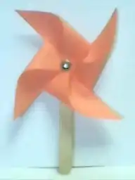9. Finally, try blowing at the edges of the pinwheel to make it spin. Loosen the pin a bit if the blades do not rotate well. Enjoy!