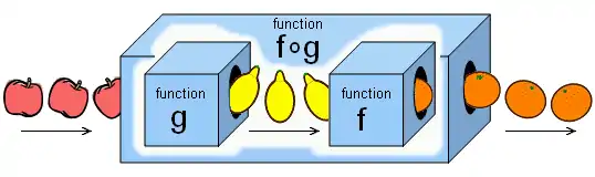 A composite function can be defined as the composite of the two functions and and denoted as (read h of x is equal to f of g of x) or .