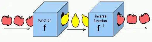 Geometrically is the reflection of across the line . Conceptually, using the box analogy, a function's inverse box undoes what the function's regular box does.