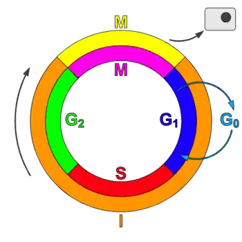 Gap 0 | G0 | A resting phase where the cell has left the cycle and has stopped dividing. |