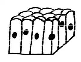 Cuboidal epithelium consists of a single layer of cube shaped cells. It is rare in the body but is found lining kidney tubules (see diagram 4.2). Molecules pass across it by diffusion, osmosis and active transport.