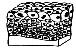 Stratified squamous epithelium has many layers of flattened cells. It is found lining the mouth, cervix and vagina. Cells at the base divide and push up the cells above them and cells at the top are worn or pushed off the surface (see diagram 4.6). This type of epithelium protects underlying layers and repairs itself rapidly if damaged.