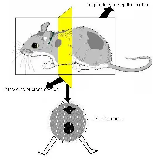 In order to look at the structure of some of the parts or organs of the body it may be necessary to cut them open or even make thin slices of them that they can be examined under the microscope. The direction and position of slices or sections through an animal’s body have their own terminology.