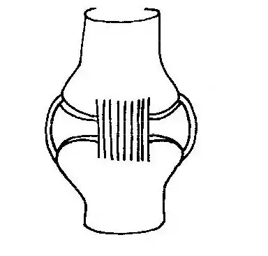 Joints are the structures in the skeleton where 2 or more bones meet. There are several different types of joints. Some are immovable once the animal has reached maturity. Examples of these are those between the bones of the skull and the midline joint of the pelvic girdle. Some are slightly moveable like the joints between the vertebrae but most joints allow free movement and have a typical structure with a fluid filled cavity separating the articulating surfaces (surfaces that move against each other) of the two bones. This kind of joint is called a synovial joint (see diagram 6.17). The joint is held together by bundles of white fibrous tissue called ligaments and a fibrous capsule encloses the joint. The inner layers of this capsule secrete the synovial fluid that acts as a lubricant. The articulating surfaces of the bones are covered with cartilage that also reduces friction and some joints, e.g. the knee, have a pad of cartilage between the surfaces that articulate with each other.