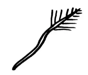 Pin feathers have a slender hair-like shaft often with a tiny tuft of barbs on the end. They are found between the other feathers and help tell a bird how its feathers are lying (see diagram 5.9).
