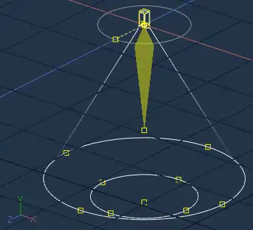 A Klieg Light emits light in the direction enclosed within the Cone Angle of the Light.