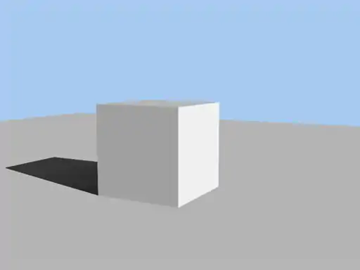 This is a Top view of a Box that is positioned just below and to the left of the light source. Notice that the shadow on the 60 cm Width Light appears to have a gradient on it unlike the nearly solid black shadow of the 10 cm Width Light. To get rid of the gradients, turn up the ray casts, and turn on multipass.