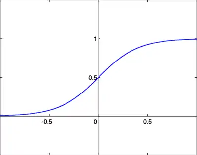 A log-sigmoid function, also known as a logistic function, is given by the relationship: