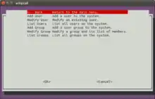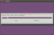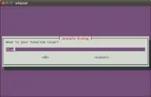Whiptail is a program that allows shell scripts to display dialog boxes to the user for informational purposes, or to get input from the user in a friendly way. Whiptail is included by default on Debian.