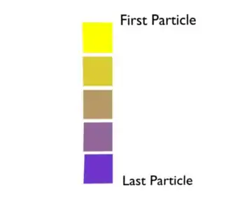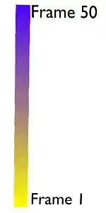 The left hand side of the colorband if the first frame of the particle life time. The right hand side is the last frame of the particle life time. |