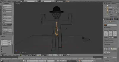 First of all, we'll need a model to put some bones on! For this tutorial, we're going to use a humanoid model. Open the model that you had created by the end of the Putting Hat on Person tutorial, or download a pre-made model from here.