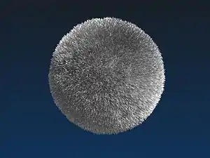 On the example sphere I have used here it is a bit difficult to tell what the natural flow should be ;-). So I have just very carefully combed and changed the length at a few places a bit. You find the rendered result in Fig. 1, the Blend file is linked below.