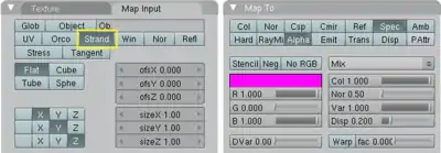 Strands are rendered with the material of the underlying face/vertex, including shading with an UV-Texture. Since you can assign more than one material to each face, each particle system may have its own material and the material of the underlying face can be different from the material of the strands. We will use an UV texture and use it for the surface of the emitter as well as for the color of the hair.
