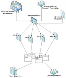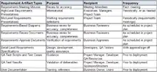 The image at right lists some common artifacts that are used for requirements management. The actual requirements artifacts that are used during the execution of a project may include these artifacts, and/or others, as appropriate for the project.