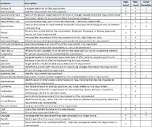 Capture the requirements to manage them throughout the project lifecycle and for re-use into the future. The level of a requirement may identify the appropriate attributes that should be captured. For example, associated costs may not be a realistic attribute for a detailed system requirements, but support prioritization for a high-level Business requirement. For each requirement, identify and record information (attributes) about the requirement that is relevant to the project. The List of Commonly Used Requirements Attributes at right lists some common attributes that are often included in a requirements repository and include the appropriate requirement level where it makes sense to capture the attribute. Please note that these attributes represent general guidelines and should be adjusted for the project scope.