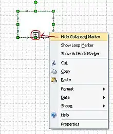 Visio© uses drag and drop to create diagrams that use shapes provided on shape ‘stencils’. Connectors that are included on the stencils are used to indicate flows, relationships, messaging or other object interface connections or associations. Objects may be modified in Visio© by right-mouse clicking on them. The pop-up menu displayed may include extra properties embedded in the object that can be adjusted.