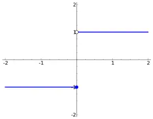 Note, however, that both one-sided limits exist; and . The problem is that they are not equal, so the graph "jumps" from one side of 0 to the other. In such a case, we say the function has a jump discontinuity. (Note that a jump discontinuity is a kind of nonremovable discontinuity.)