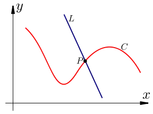 - The line crosses, but is not tangent to at .
