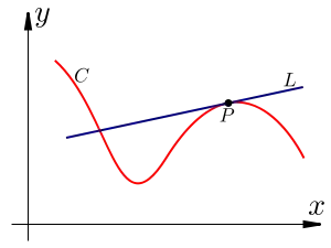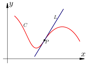 A secant is a line drawn through two points on a curve. We can construct a definition of a tangent as the limit of a secant of the curve taken as the separation between the points tends to zero. Consider the diagram below.