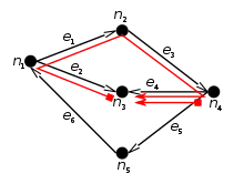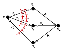 - The right image depicts the directed graph that model the electric circuit. The set of nodes is and the set of edges is .