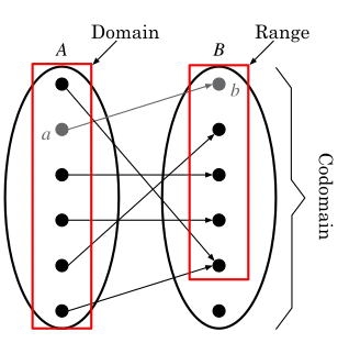 The codomain is the set , where it is not necessarily the case that all elements was mapped by some .Note that the codomain is not as important as the other two concepts.