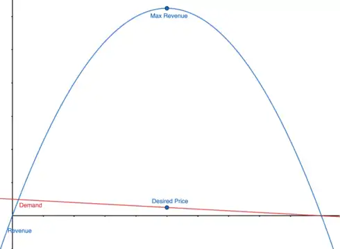 Take note of the original revenue function. Because the revenue function is a quadratic that has its term multiplied by a factor less than 0, it is guaranteed there is only one critical value, and it must be a maximum. The calculus-based approach simply confirms this truth (using the first derivate test):