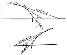 Consequently has the same sign as , or of , where is the angle that the tangent to the curve at the point in question makes with the -axis.