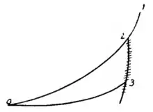 For erect lines along the curve 01 perpendicular to the plane of this curve. On these perpendiculars take lengths equal in value to the second integral, where in each case the integration is taken from 0 to the foot of the perpendicular. Then to the curve 01 there corresponds a curve in space , where the points in space are marked by indices corresponding to the points in the plane.