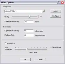 Make sure the "Capture Frames Every" and "Playback Rate" are set appropriately, see "Video Options" above