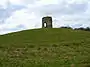 Commanding position, earthworks and fragment of wall remain. |