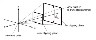 - the distance to the near clipping plane and the distance to the far clipping plane as illustrated in the next figure,