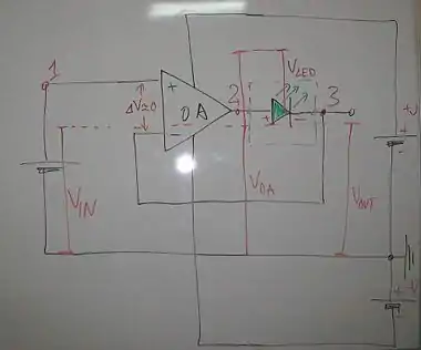 What can act as a varying voltage source in our electronic circuit? What can "help" the imperfect diode by adding so much voltage to the input voltage as it loses across the diode? At last Lab 3 we were using transistors for such a purpose; let's now, for the sake of change, use an op-amp...