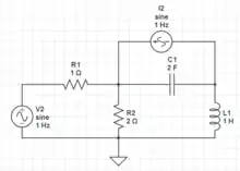 Given that the voltage source is defined by and the current source is defined by , find all other voltages, currents and check power.