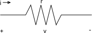 Resistance is measured in terms of units called "Ohms" (volts per ampere), which is commonly abbreviated with the Greek letter Ω ("Omega"). Ohms are also used to measure the quantities of impedance and reactance, as described in a later chapter. The variable most commonly used to represent resistance is "r" or "R".