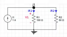 There are two junctions in the circuit. One bottom junction was labeled with ground. The top was labeled .